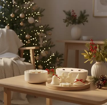 Un centro de mesa iluminado con velas no tóxicas aporta serenidad incluso antes de encenderlo. Un rincón con ambientadores sólidos en una bandeja de madera crea una presencia aromática que acompaña sin saturar. Los tonos suaves de la cera de soja natural combinan con cualquier estilo: nórdico, minimalista, rústico o contemporáneo.